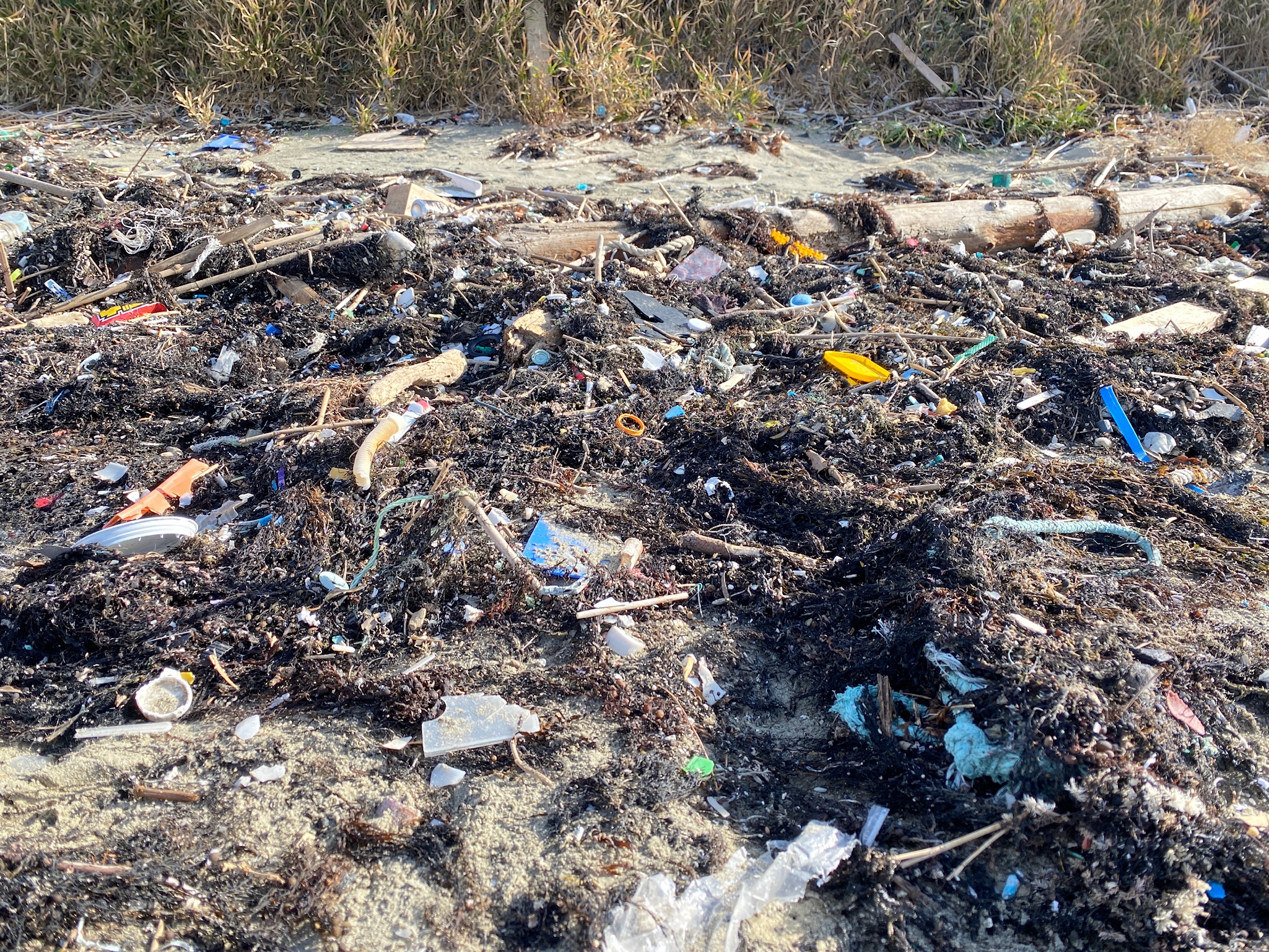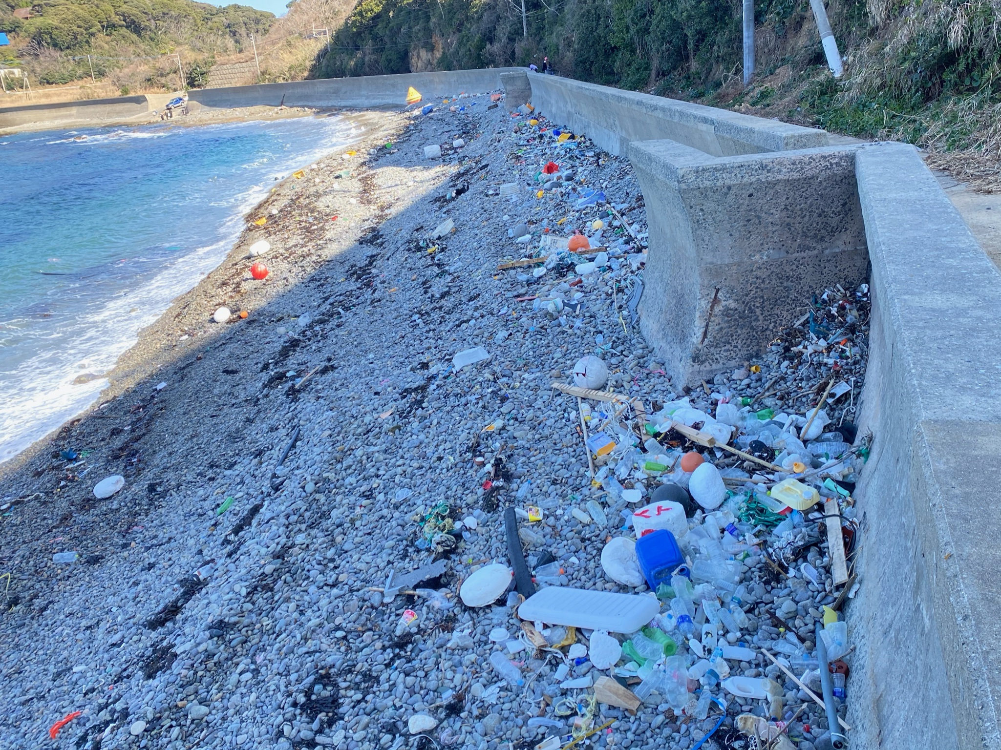 清掃が行き届かない場所には多くの漂着ごみが蓄積されています。